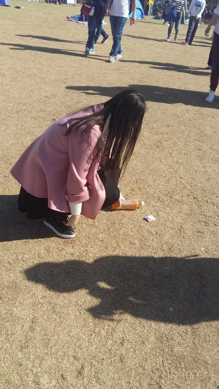 到达目的地后,所有同学就立马开始行动。同学们用手捡拾着垃圾,时不时地弯下腰去。很快,同学们的额头上沁出薄薄的汗珠,但是同学们相互说笑着打趣着,把它当做是一件温暖快乐的小小举动来做。周围的游客们被我们的行动所吸引,投来好奇的目光。