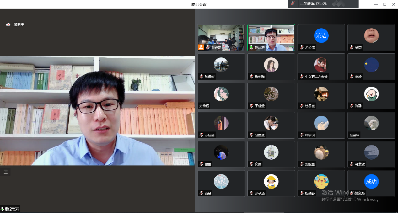 学院教师第二党支部书记、文学系系主任赵运涛线上参会并发言。赵老师从冬奥会开幕式、闭幕式中蕴含的二十四节气、长信宫灯等中国元素展开,对开幕式从日常生活中的常见意象中取材来展示、传播中华文化的方式途径做了分析,他强调了冬奥对中国文化自信的宣传和展现,对中文学子日后传承文化、挖掘经典,发挥民族特色和文化特色提出了期许,点明学院学子未来应该担负好传承与传播中国文化、与世界交流、讲好中国故事的重任。
