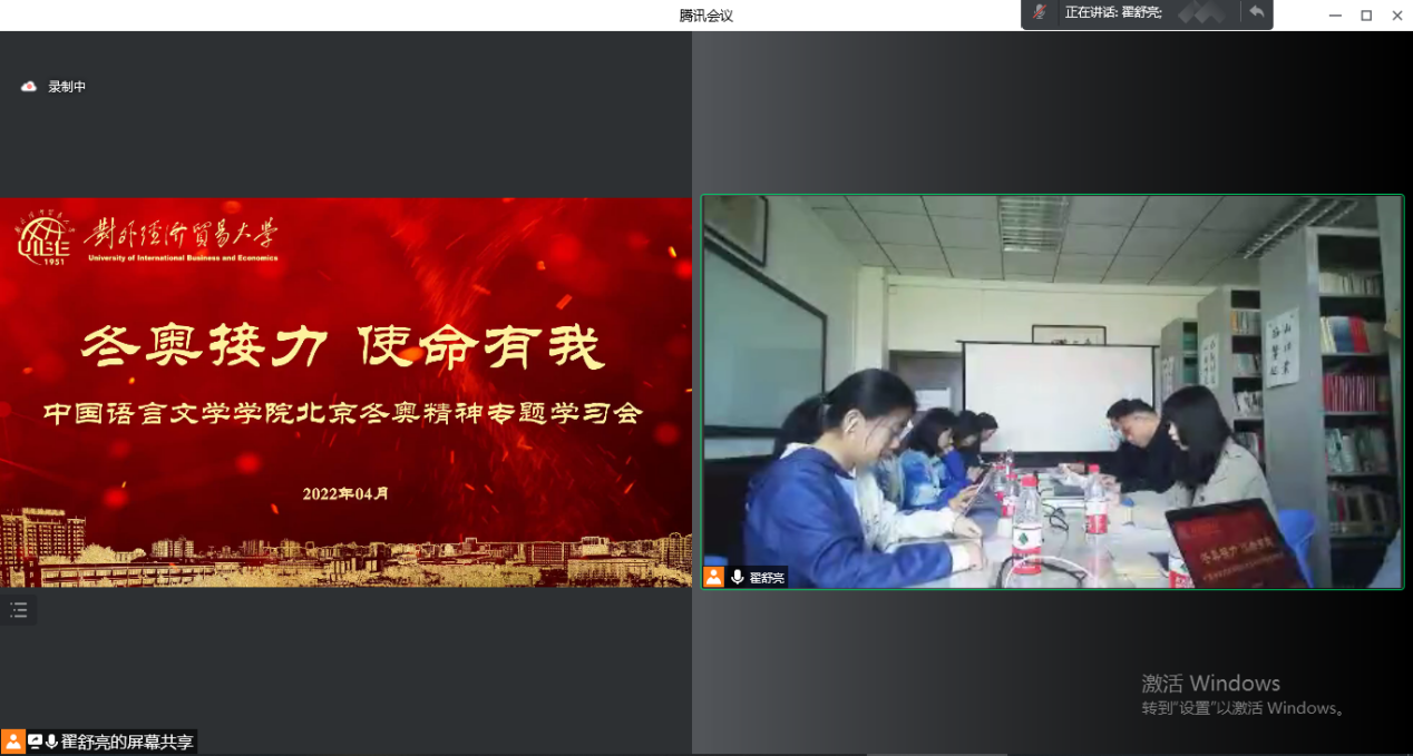 2022412日中午,beat365体育官网平台党委在诚信楼406惠文书驿举办北京冬奥精神专题学习会。围绕“冬奥接力 使命有我”主题,近200名师生学习习近平总书记在北京冬奥会、冬残奥会总结表彰大会上的重要讲话,并聆听在场嘉宾的学习感悟。学院党委书记唐兴全,国开院盛茜及学院辅导员,冬奥会志愿者代表和学生代表参加线下会议,学院党委理论中心组全体成员,学院本科、预科、研究生、留学生在线上参会。学习会由学院党委童德毅副书记主持。