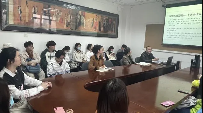 随后,刘赫然老师通过自己的专业学习和军人实战的视角,为同学们分析了当今世界的局势,以及中国在世界舞台中逐渐崛起所带来的机遇和危险,让同学们对“冷战思维回潮”、“大国间信任度降低”、“军备竞赛加剧”、“北约全球化”等概念有了更深入的了解,也让同学们意识到国家安全无小事、保家卫国均有责。