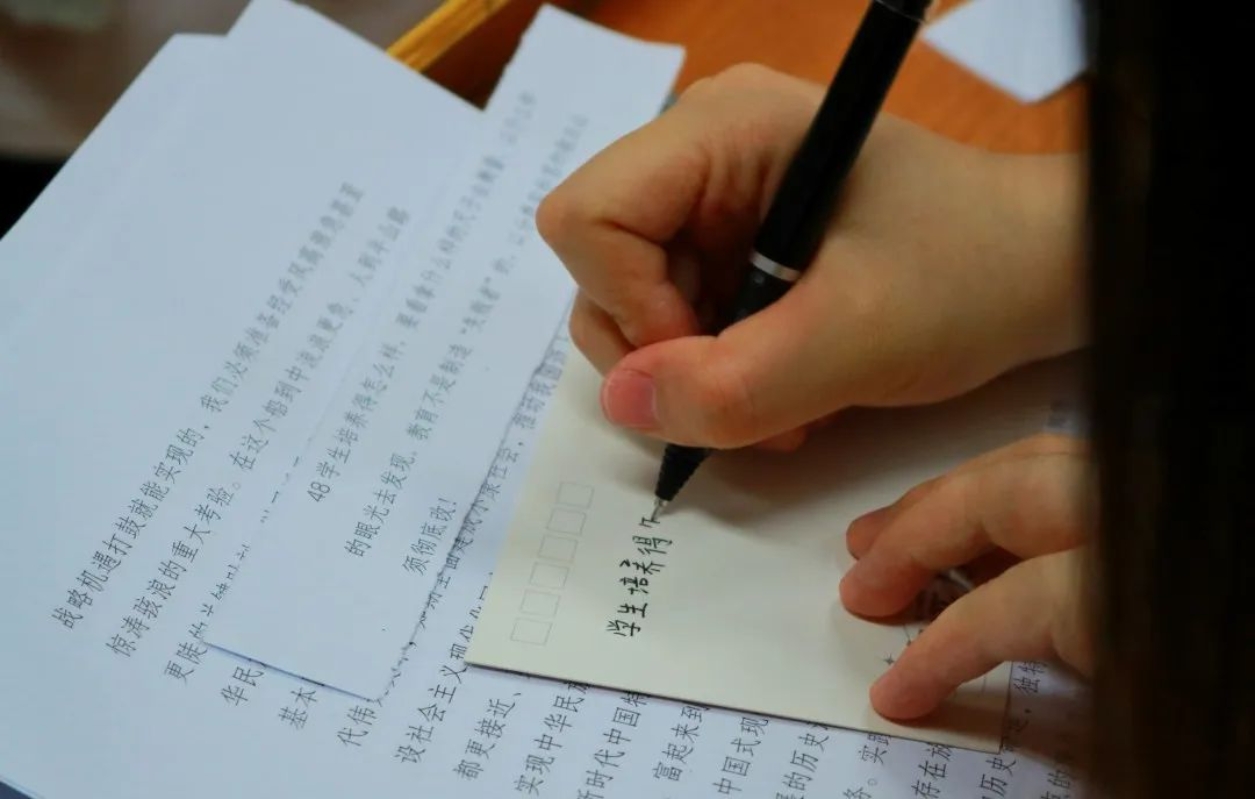 交流研讨之后,各位党员接续将《培养德智体美劳全面发展的社会主义建设者和接班人》的内容手写到明信片上,作品将留存于本学院“弘传坊”党员活动室作品墙上,这是关于中文学院每一位党员集体创作的记忆,也是青年学生党员集体研学的生动成果。