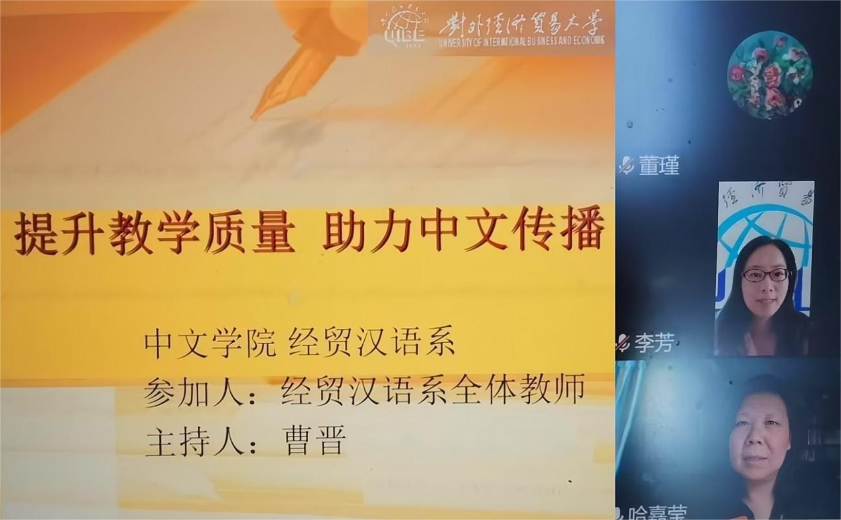 曹晋老师首先对本次发展思想大讨论开展的背景、本次会议的主题进行了介绍。他指出,经贸汉语系新时代高质量发展思想大讨论的开展,不仅仅是为落实学校的相关工作部署,同时也是当前形势下提高教学质量的迫切需要。如何开展好线上的中文教学,如何建设高质量的外聘教师队伍,保证教学质量,是迫切需要深入讨论的问题。