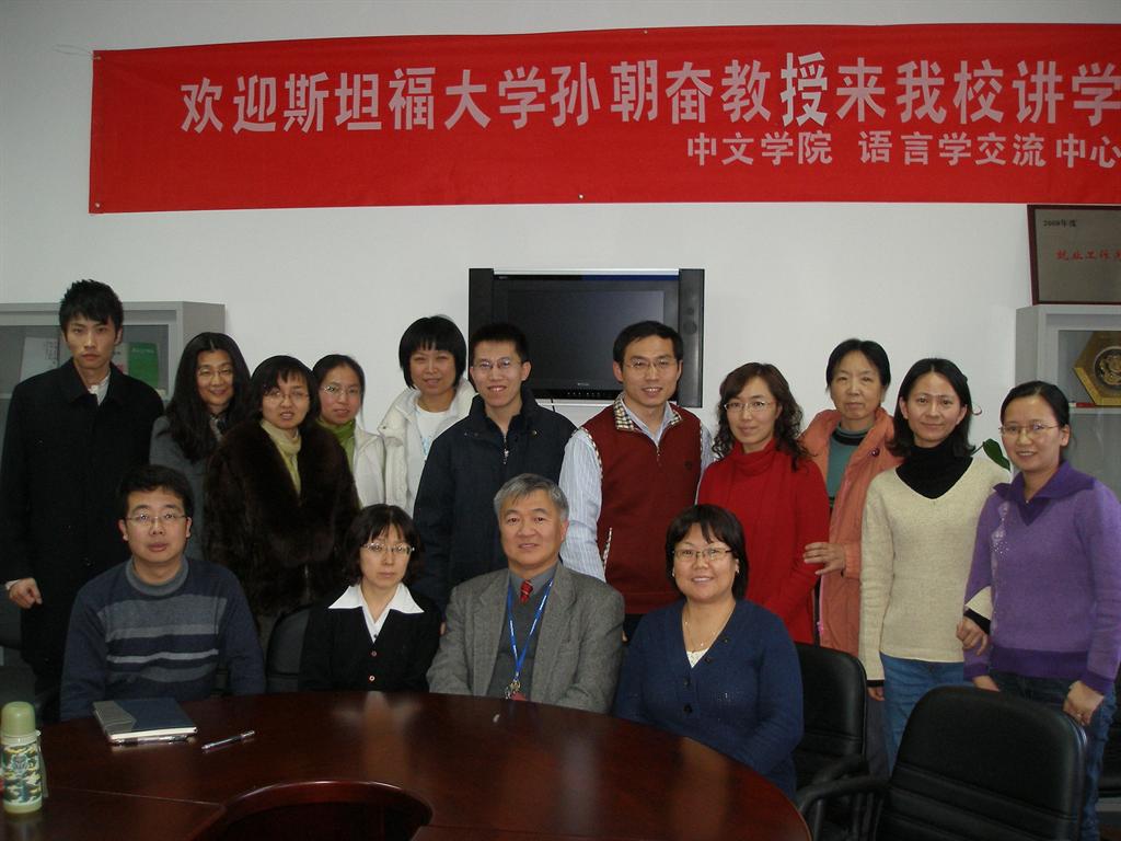 受中文学院和语言研究中心的邀请,2009年12月17日下午两点,美国斯坦福大学孙朝奋教授为中文学院和语言研究中心的老师们举行了一次题目为《现代汉语方位词的两种限制》的学术讲座,讲座由中文学院院长董瑾主持。