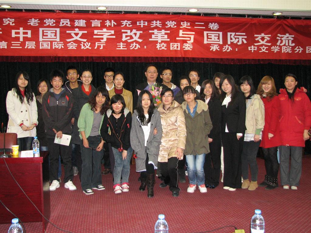 接下来贾教授重点向大家讲述了新中国初期(1955-1965)语言文字建设的三项重大成就以及发展历史与意义,即汉字简化、汉语拼音方案的制定推行、普通话推广。通过新颖、有趣的故事串讲,贾教授为观众勾勒出一幅关于汉语、汉字发展演变的宏大图景,尽管语言文字在现实发展过程中存在一些不足,但它们着实承载着厚重的文化。中国有着悠久的历史,这些源远流长的文明使我们日益为世界所瞩目,不断增加的、频繁的国际交流也正是需要这些文化底蕴作为基础,所以了解我国语言文字工作的发展对我国今后的发展与国际交流有着毋庸置疑的重要性。