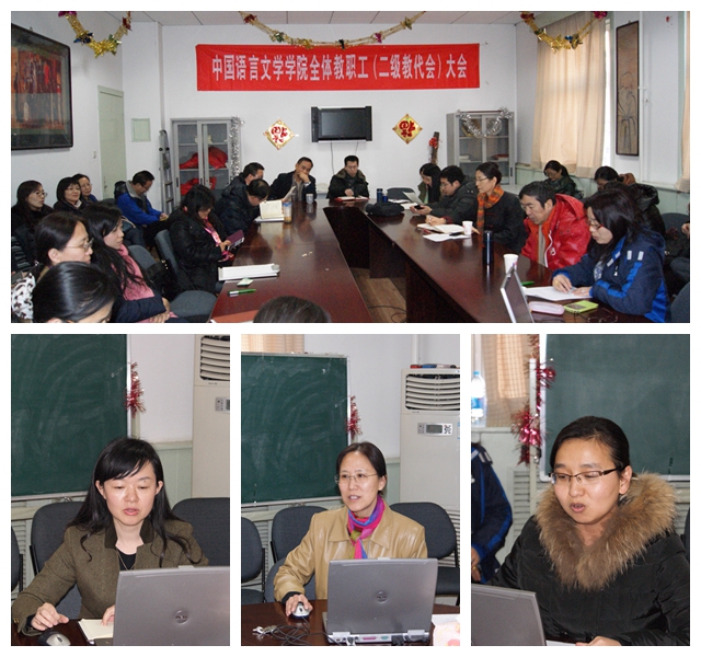 周晨萌副院长从教学、科研、培训与合作等方面进行了教务工作的述职,强调了2013年中文学院在常规教学工作做好的同时,也建设了新专业;在监控教学质量的同时,修订了教学制度、组织了学科竞赛、申报验收了教学课题、增加了暑期课程;在组织常规科研申报的同时,加大了科研管理制度的梳理、修订力度,整理了英文核心期刊,教师申报的课题、发表文章的质量等都有了里程碑式的发展。