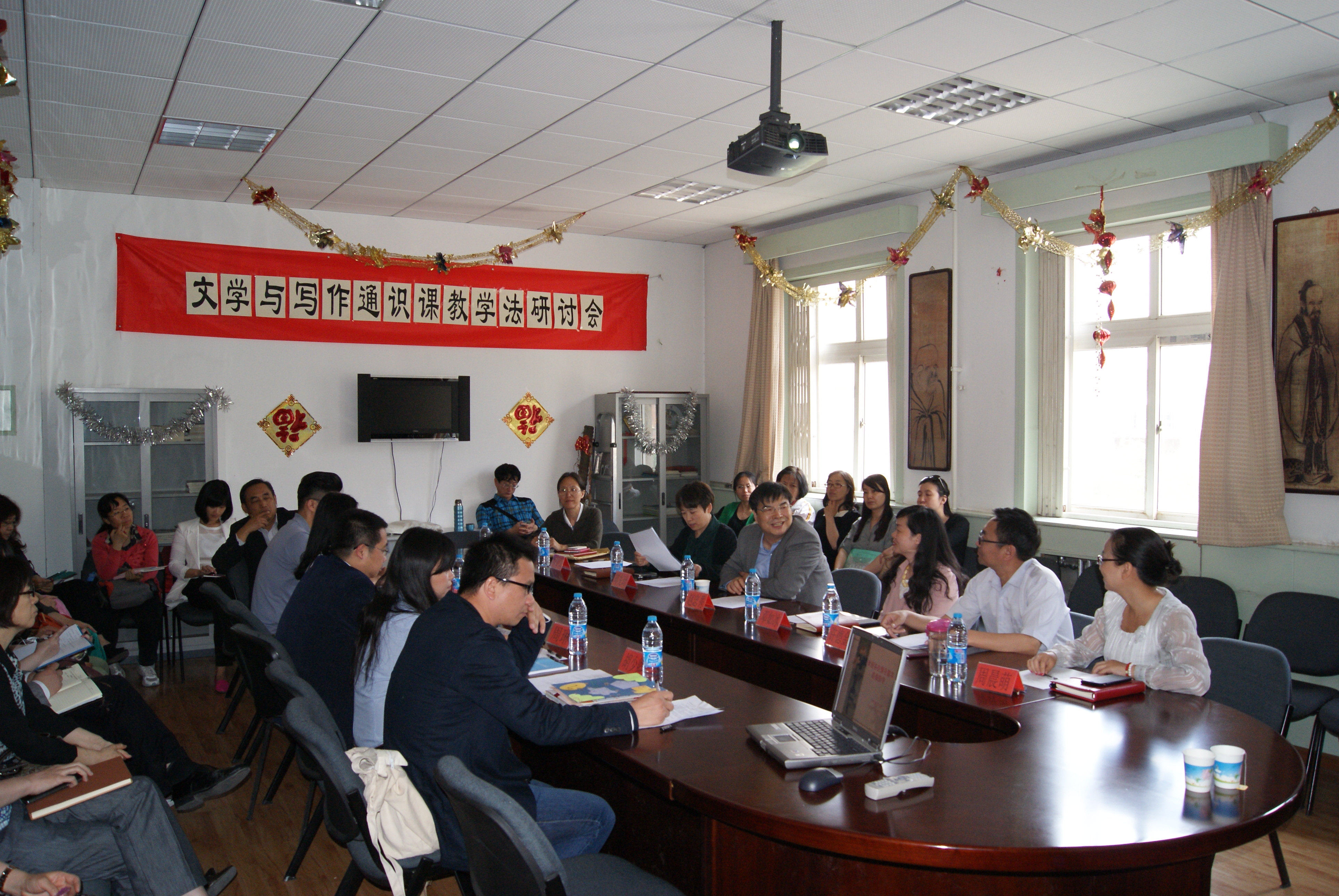 2015年5月14日下午,赵忠秀副校长莅临beat365体育官网平台,参加体育官网举办的“文学与写作通识课教学法研讨会”,同行的还有教务处蒋先玲处长,英语学院许德金副院长和外语学院郭德玉副院长。会议由中文学院周晨萌副院长主持,全体老师参会研讨。
