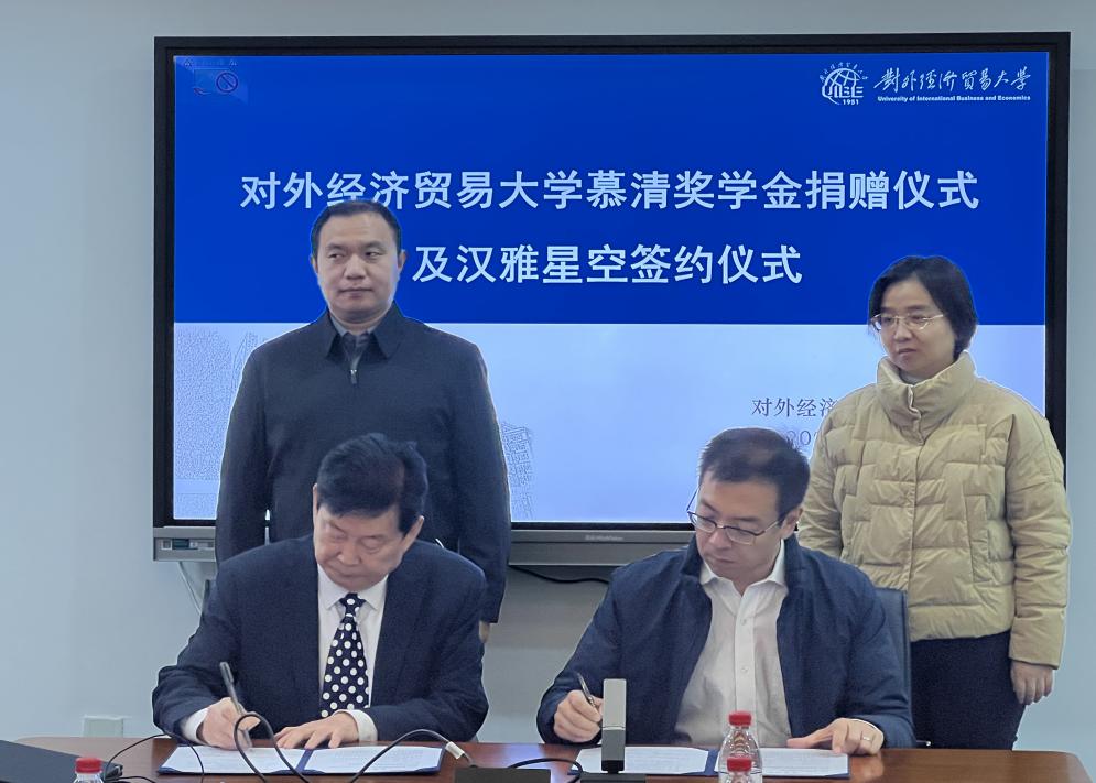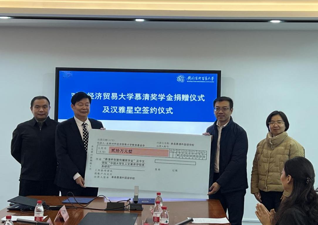 双方领导为第一届慕淸杯“Talk about China”微视频大赛的获奖选手颁奖,该比赛是由对外经济贸易大学beat365体育官网平台主办,北京寰宇博科文化传播有限公司、中国华铭中文学习测试中心联合承办,慕清外国语学校冠名的第一届“我把‘中国’讲给你听(Talk about China)”微记录片创作大赛,于2023年10月-11月拉开序幕,本活动旨在征集外国青年说出自己跟中国有关的故事,加强中外青年的文化交流。比赛自开始征集作品以来,收到全世界十二个国家一百多名留学生的视频作品,该比赛的设置无疑将推动我校文化创意的多元化发展、高质量发展和融合式发展。微视频原创大赛则是讲好贸大故事、传播贸大形象最好的载体,对推动贸大文化的传播起到积极作用。