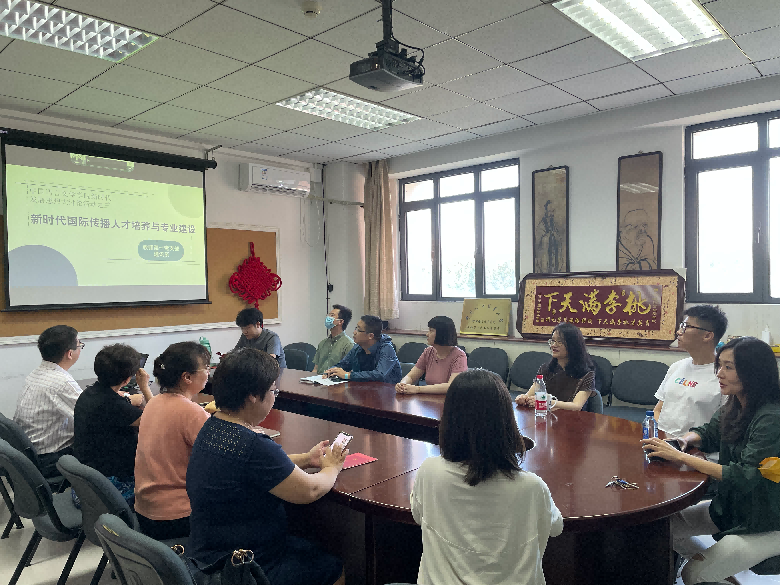 2022年9月8日下午,beat365体育官网平台教师第一党支部和通识系全体教师在诚信楼422召开题为“新时代国际传播人才培养与专业建设”的第三场新时代高质量发展思想大讨论。beat365体育官网平台副院长周晨萌(主持工作)与会,并就相关问题进行了解读。网络与新媒体专业教师胥琳佳、秦汉、杨嘉仪分别就专业建设方向、人才培养路径、实验室建设等议题发表看法,其他与会教师补充发言并展开热烈讨论。