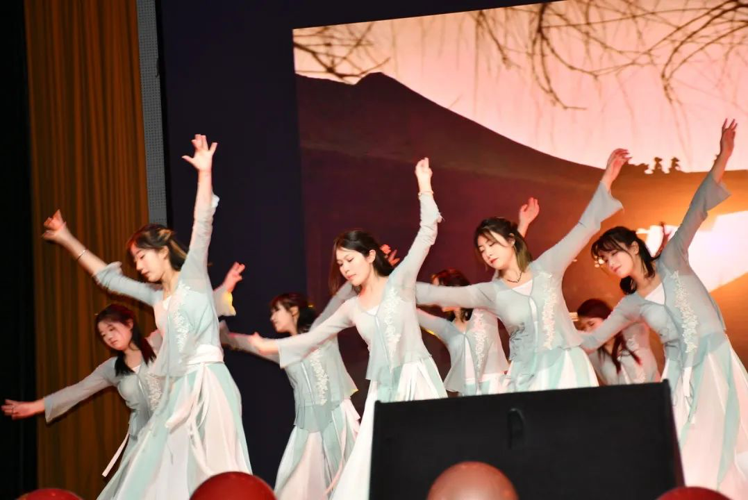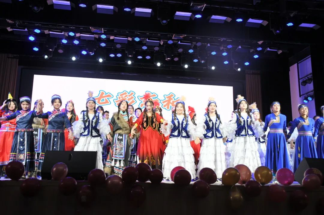在此篇章,凭此一瞬,瞻千年华美。芳华时节至,花落燕已归,敕勒苍穹下,七彩民族姿。同学们将文化凝聚进歌舞,“妙舞随裙动,行歌入扇清”,中国之大,无论来自哪里,深藏在华夏民族血脉的文化基因,只要一个舞姿,一句唱词,就能心照不宣,同频感动。