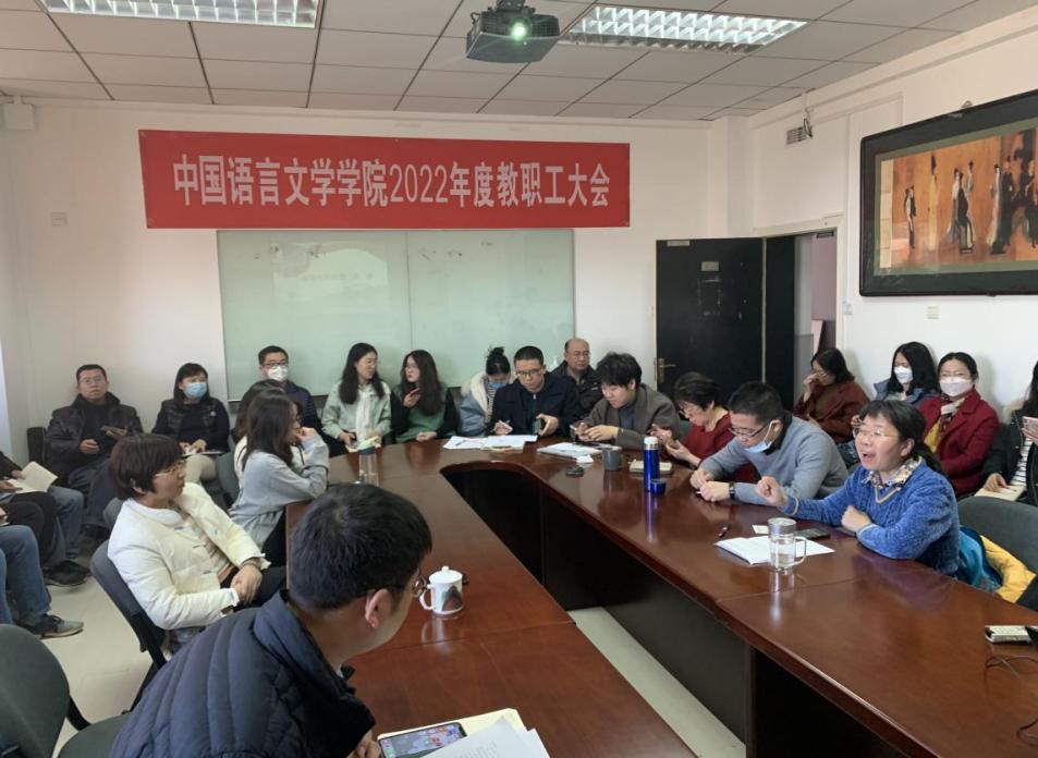为贯彻落实《学校教职工代表大会规定》(教育部令32号),进一步推进学院的各项工作、民主管理与监督,2023年3月2日下午,中文学院在诚信楼422会议室召开2022年度二级教代会暨领导班子述职大会,教代会代表杨宏老师主持会议,全体教职工参会。国际商学院专职组织员谢静列席会议。