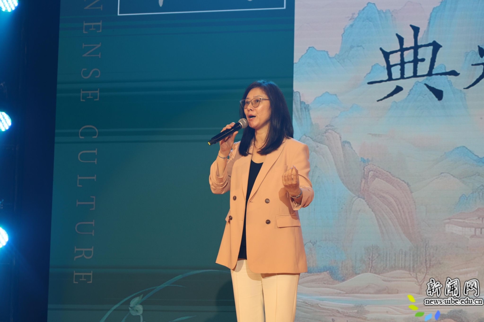对外经济贸易大学党委副书记张小锋致辞,他向大家提出了四点希望:一是走近经典,打开传统文化之门。只有全面深入了解中华文明的历史,才能更有效地推动中华优秀传统文化创造性转化、创新性发展。二是经典诵读,提升中国语言文化素养。深入开展阅读朗诵体验活动,增强阅读体验,感受阅读魅力体悟中华优秀文化内涵。三是立德树人,诗歌美育时代新人。培养懂中国知世界、通晓国际规则、熟练中外沟通,具有全球视野的国际化人才。四是文明互鉴,扩大教育对外开放。感受中华文化对世界文明兼收并蓄的开放胸怀,让“留学贸大”的品牌更加闪亮。