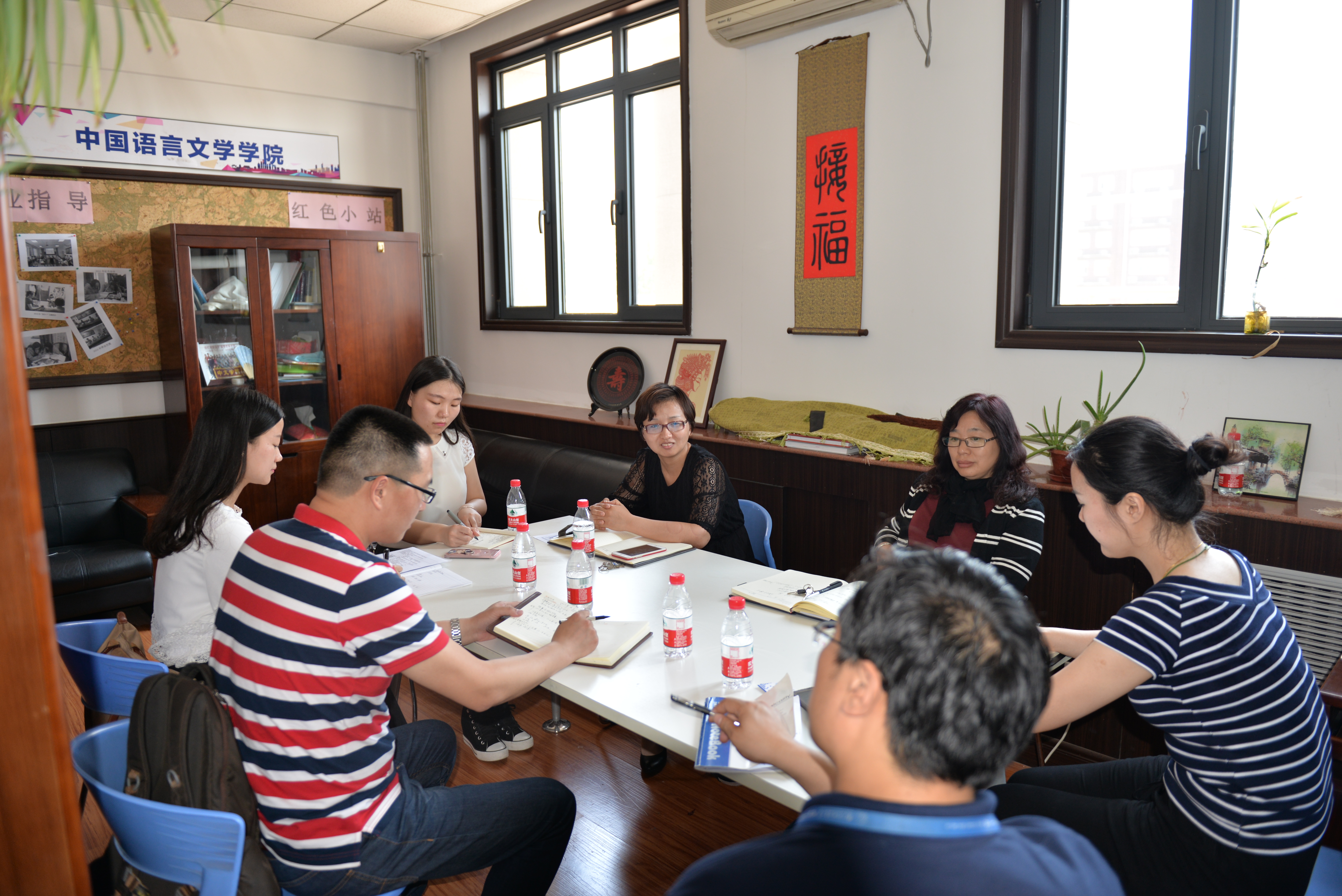 周晨萌副院长首先对北京工商大学艺术与传媒学院一行表示欢迎,介绍了中文学院师资、专业基本情况,北京工商大学艺术与传媒学院的张老师也对其学校的发展沿革、学科侧重进行了介绍,表示正在为设立汉语言文学(商务汉语)专业做准备,希望向贸大学习经验。中文学院、国际学院几位老师针对工商大学在招生、课程设置、留学生管理等方面提出的问题进行了详细解答。双方讨论充分,表达了未来增进交流,互相学习、促进共同发展的友好愿望。