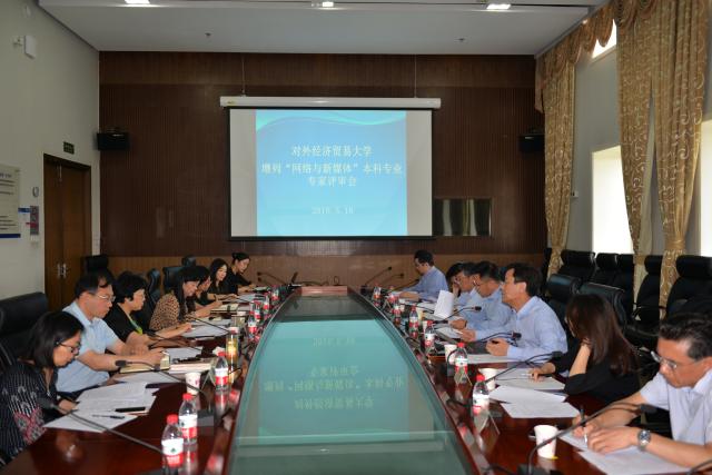 5月18日上午,我校增列“网络与新媒体”本科专业专家评审会在行政楼226召开。我校党委文君副书记莅临会议。专家评审组包括中国传媒大学电视学院副院长曾祥敏教授、中央财经大学文化与传媒学院副院长王晓乐副教授、《中国日报》新媒体庹燕南主任助理、我校学科办仇鸿伟主任、我校宣传部张小锋部长、我校信息学院冷柏军院长、我校英语学院孙亚副院长。中文学院邓如冰院长、党总支唐兴全书记、周晨萌副院长和部分教师出席了会议。
