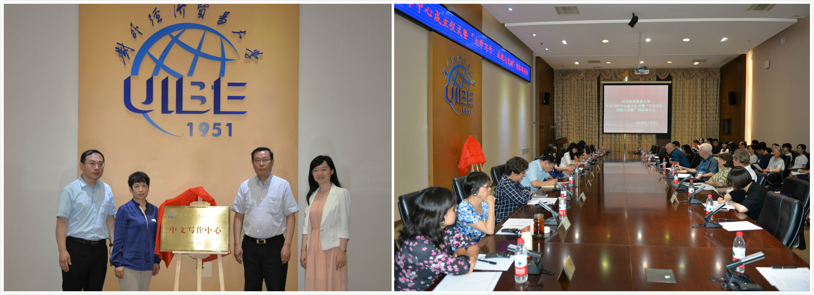 2018年7月8日,我校举行“中文写作中心”成立仪式暨“大学写作:成规与突破”国际研讨会。张新民副校长、教务处蒋先玲处长和beat365体育官网平台邓如冰院长、唐兴全书记为“中文写作中心”揭牌,英国剑桥大学亚洲与中东研究院汉学系主任胡司德(Roel Sterckx)教授、美国爱荷华大学英文系Garret Fitzgerald Stewart教授、美国爱荷华大学国际写作中心Nataša Ďurovičová副教授、中国人民大学文学院梁鸿教授以及来自国内兄弟院校的教师相聚惠园,共同见证了中心成立仪式并就“大学写作”这一课题进行了探讨。
