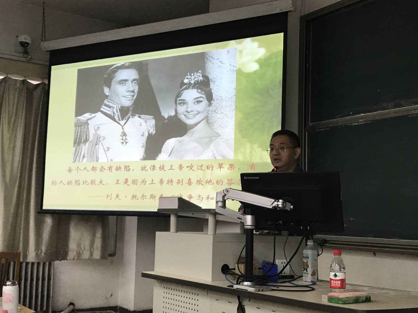 教授以经典佳作《战争与和平》为例,对其做了简单介绍并表达了他对此部作品的高度评价和深切的热爱,他同时还介绍了经典作家肖洛霍夫及其作品《静静的顿河》和《一个人的遭遇》。教授接着讲述了五部五四时期留下的永恒经典来诠释经典,概叙的经典包括《阿Q正传》、《雷雨》、《边城》、《荷花淀》、《围城》。教授对五部经典的讲叙使得同学对经典的理解更加深入。