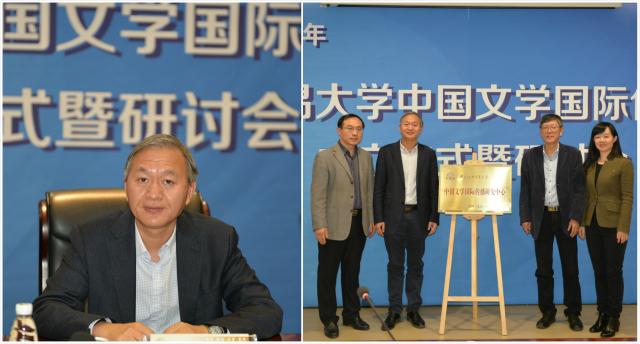 王强副校长首先对“中国文学国际传播中心”的成立表示祝贺。他指出,加强中国文化的国际传播、推动中国文化“走出去”是国家战略,我校作为国际化、外向型大学,始终站在对外开放的最前沿,在建设“双一流”大学、打造开放型经济学科群的同时,努力推动中文学科的国际化建设,推动中国文学与文化在世界范围内的传播。中心的成立,有利于组织团队对中国文学的国际传播相关问题进行更深入的研究,增强中国文学的世界影响力,更好地服务于中国文化“走出去”的国家战略。学科办仇鸿伟主任表示,中心的成立是学校学科建设组成的重要部分。他追溯了中国文化传播漫长的发展历程,指出“中国文学的国际传播”是跨学科课题,符合国家战略,必将大有可为。揭牌仪式由中文学院院长邓如冰教授主持。