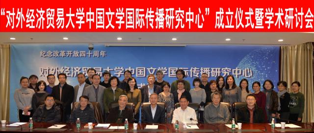 为纪念改革开放四十周年,11月29日,“对外经济贸易大学中国文学国际传播研究中心”成立仪式暨学术研讨会在科研楼校董会议室举行。副校长王强教授、学科办主任仇鸿伟教授、中文学院院长邓如冰教授、中国人民大学国学院院长杨慧林教授、北京外国语大学海外汉学研究中心张西平教授、中国现代文学馆傅光明研究员、北京大学中文系臧棣教授、首都师范大学文学院教授孟庆澍、中国艺术研究院李松睿副研究员作为专家与会,另有来自北京大学等兄弟院校的专家学者及我校英语学院、外语学院及中文学院师生共四十余人参加了会议。