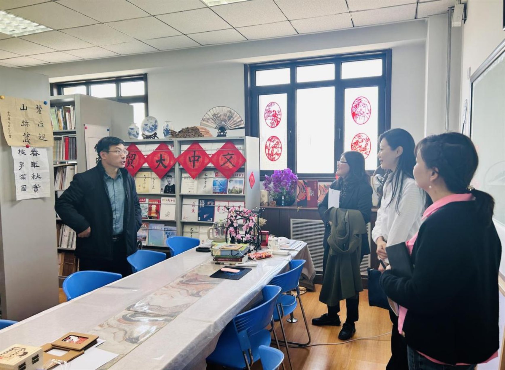 2024年4月9日下午,继续教育与远程教育学院党总支王春蕾书记、赵贞副书记率队到体育官网调研基层党建工作。