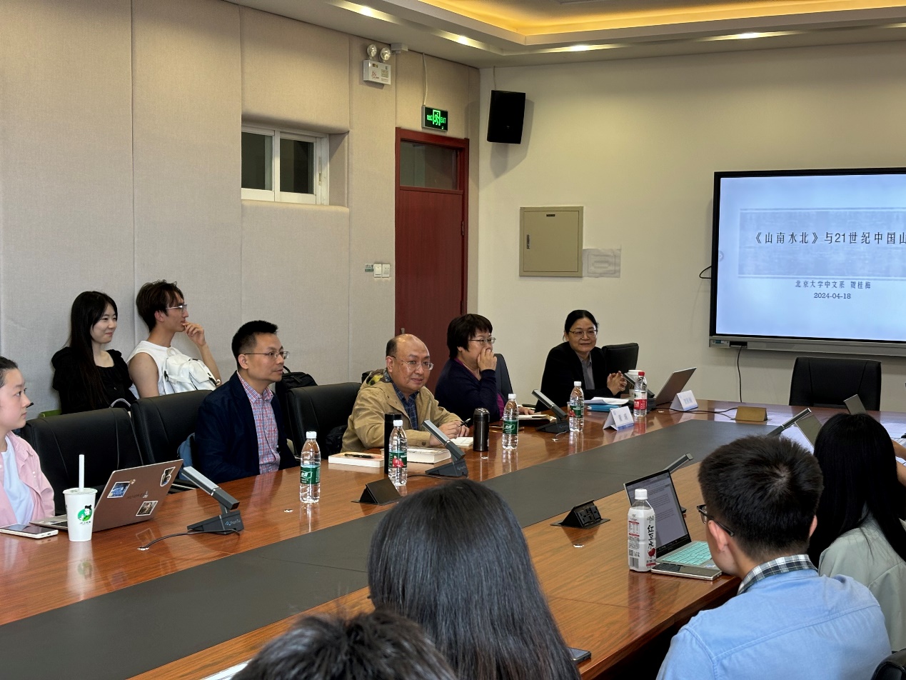2024年4月18日,对外经济贸易大学惠文书院前沿讲座·中国文学国际传播工作坊第八讲如期而至,本次讲座特邀北京大学中文系教授、博士生导师贺桂梅老师作为主讲嘉宾,以“《山南水北》与21世纪中国山水的再发现”为主题。本次讲座由董瑾教授主持。